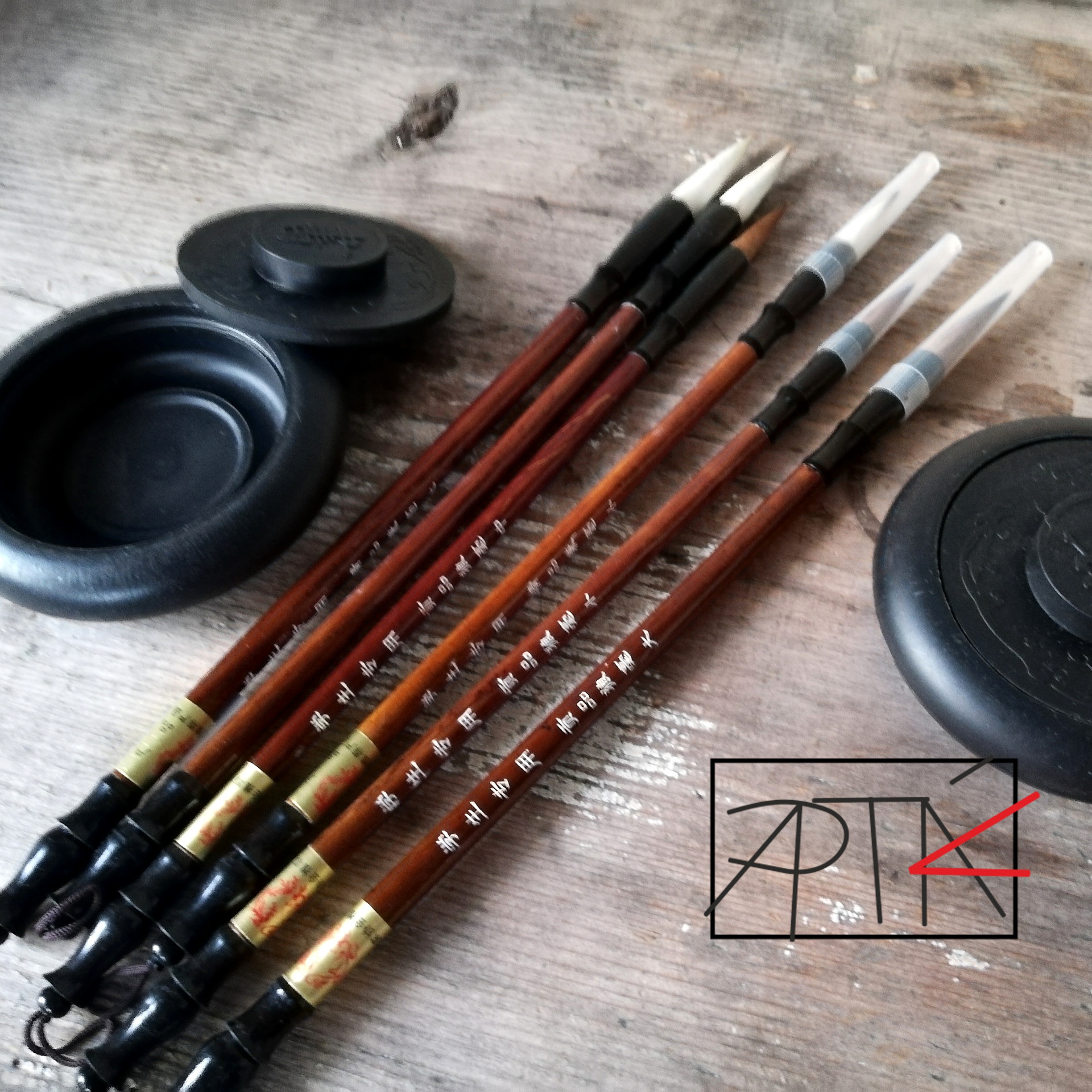 Štětec na čínskou malbu, 2 kusy, bílý chlup