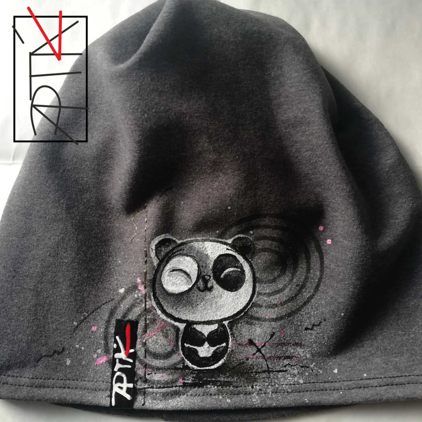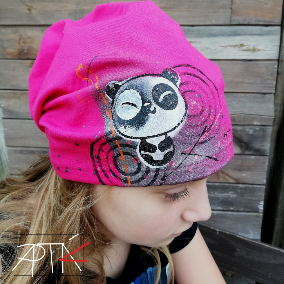 Malovaná čepice "panda", teplejší
