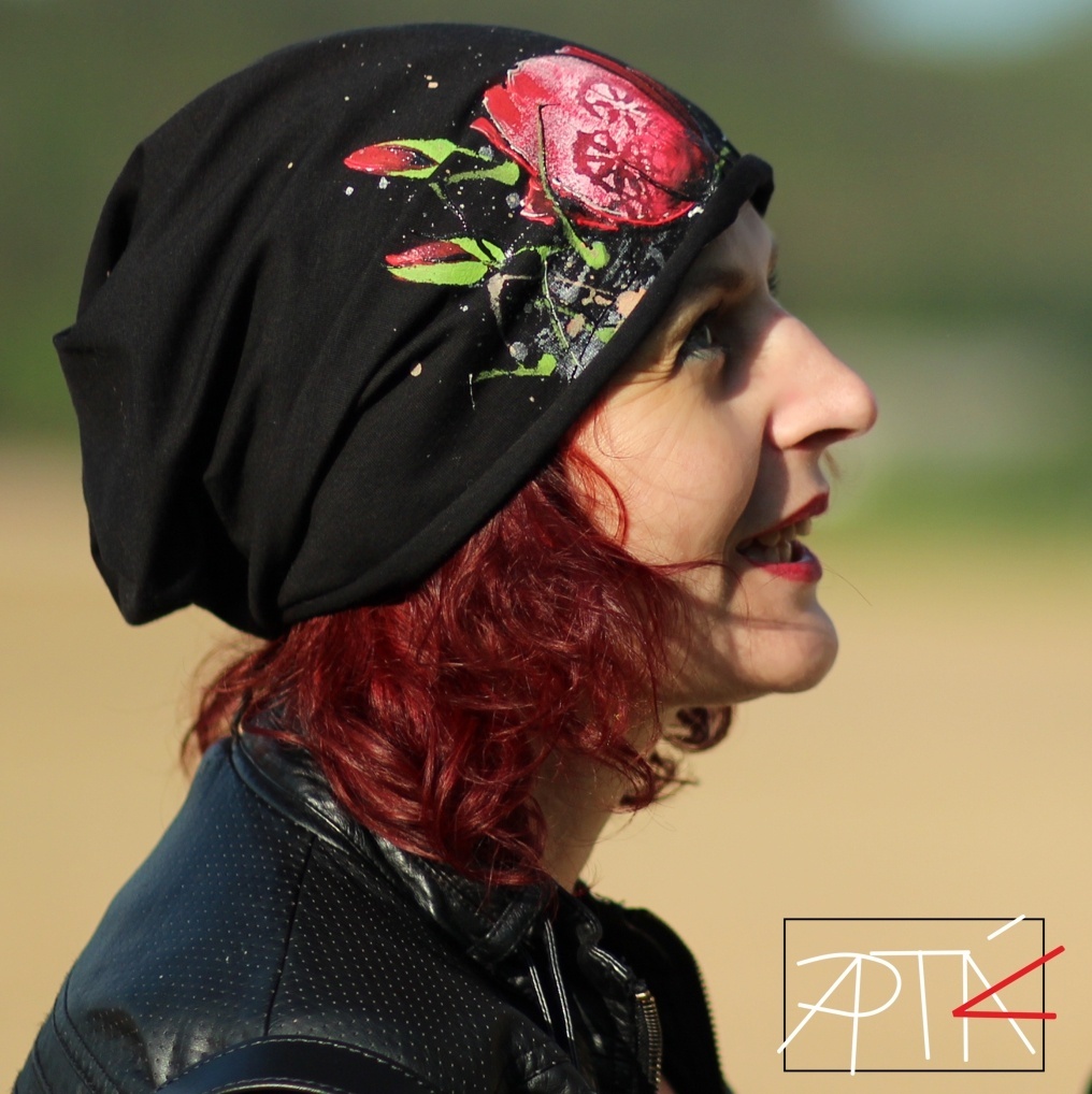 Malovaná čepice "Máky", teplejší, černá