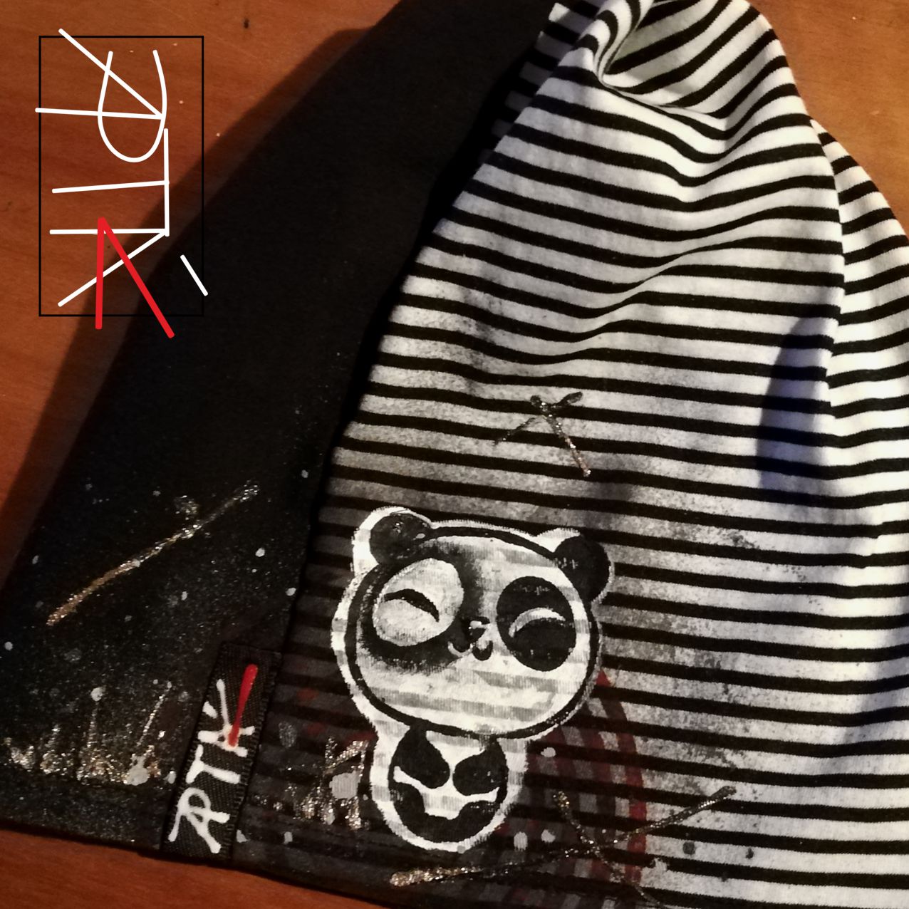 Malovaná čepice "panda", pruhy