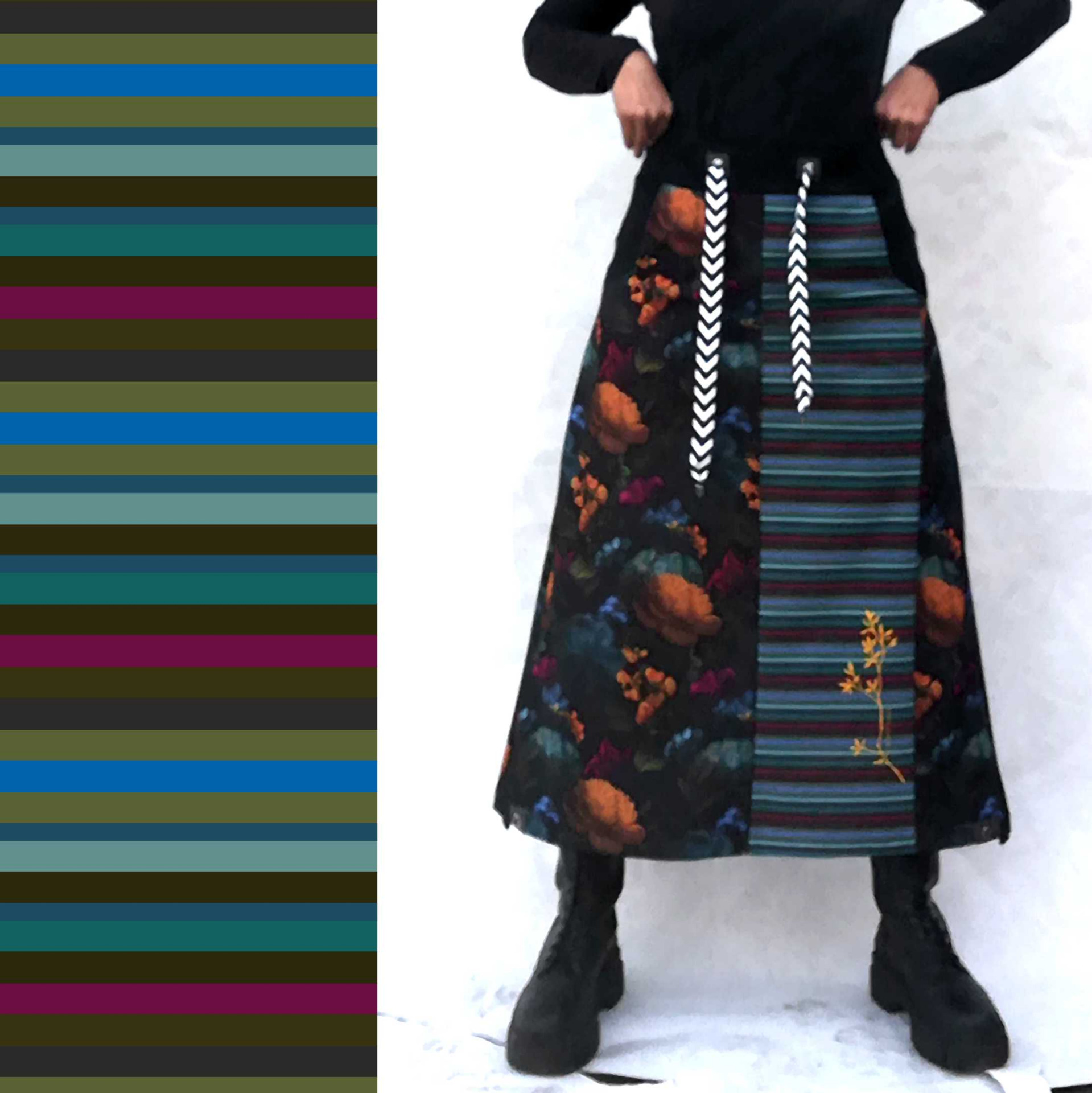 sukně SOFT, tmavá zahrada, dlouhá, teplejší